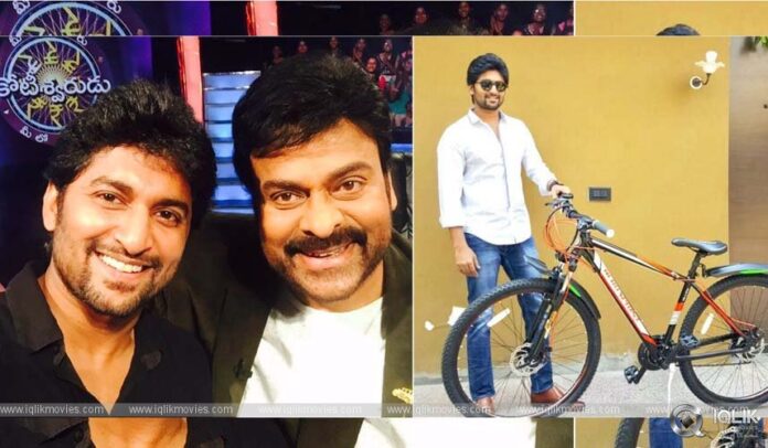 మెగాస్టార్‌ చిరంజీవి నుంచి అందింది కాబట్టి దాన్ని మెగా సైకిల్‌ అనాలి. అందుకున్నదెవరంటే, యంగ్‌ హీరో నాని. నేచురల్‌ స్టార్‌ నాని, చిరంజీవికి వీరాభిమాని. చిన్నప్పుడు ‘మాస్టర్‌’ సినిమా చూసేందుకు కొత్త సైకిల్‌తో వెళ్ళి, సినిమా టిక్కెట్‌ దొరికిన ఆనందంలో సైకిల్‌ని మర్చిపోయాడు. అలా ఆ సైకిల్‌ పోయింది. ఆ విషయాన్ని ‘మీలో ఎవరు కోటీశ్వరుడు’ గేమ్‌ షోలో నాని, చిరంజీవితో చెప్పడమే కాకుండా, అలాంటి సైకిల్‌ తనకు ఇప్పించాల్సిందిగా కోరాడు.