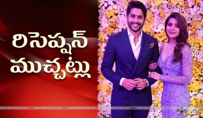 ఆ తర్వాత వీరిద్దరూ షూటింగ్స్లో బిజీ అయిపోవడం జరిగింది. తాజాగా ఆదివారం వీరి వివాహ రిసెప్షన్ని హైద్రాబాద్లో ఘనంగా నిర్వహించారు. అక్కినేని కుటుంబ సభ్యులు, దగ్గుబాటి కుటుంబ సభ్యులు ఈ వేడుకను సంబరంగా ఏర్పాటు చేశారు. ఈ వేడుకకు మెగాస్టార్ చిరంజీవి, డైరెక్టర్ రాజమౌళి, సూపర్ స్టార్ కృష్ణ దంపతులు సహా పలువురు అతిరధ మహా రధులు హాజరయ్యారు. ఈ వేడుక సింప్లీ సూపర్బ్గా జరిగింది. స్పెషల్గా డిజైన్ చేసిన రిసెప్షన్ దుస్తుల్లో సమంత మెరిసిపోయింది.