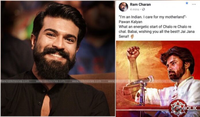 మెగాపవర్స్టార్ రామ్చరణ్తేజ, తన బాబాయ్ పవన్కళ్యాణ్కి ఆల్ ది బెస్ట్ చెప్పాడు. పవన్కళ్యాణ్ స్థాపించిన జనసేన పార్టీకి మద్దతుగా సోషల్ మీడియాలో ఇంట్రెస్టింగ్ కామెంట్ పోస్ట్ చేశాడు. ‘జై జనసేన’ అంటూ చరణ్ పేర్కొనడం గమనించదగ్గ అంశమిక్కడ.