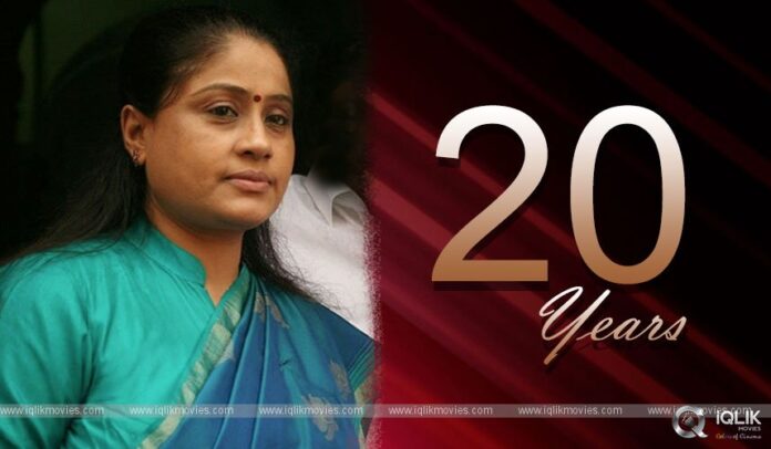ప్రముఖ నటి, రాజకీయ నాయకురాలు అయిన విజయశాంతి క్రియాశీలక రాజకీయాల్లోకి వచ్చి రెండు దశాబ్దాలు అవుతున్నది. ఈ తరుణంలో విజయశాంతి అలియాస్ రాములమ్మ రాజకీయ ప్రస్తానం గురించిన కొన్ని కీలక సంఘటనలు మీ కోసం-