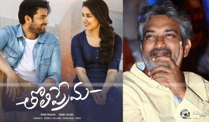 చిన్న సినిమాలను మెచ్చుకోవడంలో ఈ మధ్య రాజమౌళి ముందుంటున్నారు. గతేడాది ది బెస్ట్ ఫిల్మ్ అంటూ ‘అర్జున్రెెడ్డి’ చిత్రాన్ని ప్రశంసలతో ముంచెత్తేశాడు. విజయ్ దేవరకొండ హీరోగా తెరకెక్కిందీ చిత్రం. అలాగే తాజాగా రాజమౌళి దృష్టిని ఆకర్షించిన మరో చిత్రం ‘తొలిప్రేమ’.