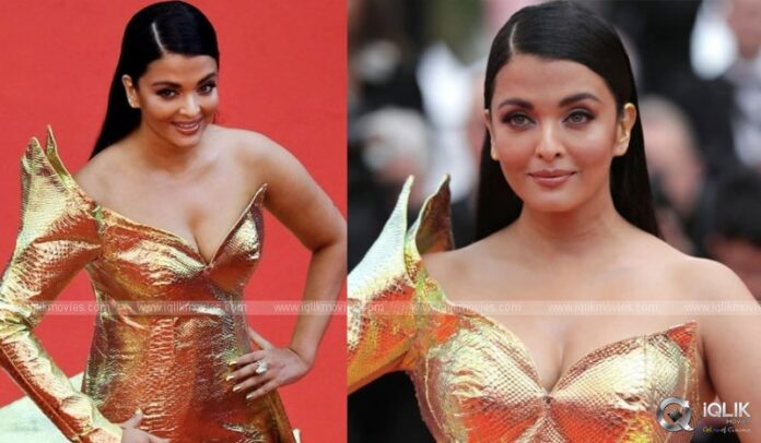 ఆ ప్లేస్‌లో ఐశ్వర్యారాయ్‌దే మొదటి స్థానంగా చెప్పుకోవాలేమో. తాజాగా కేన్స్‌లో అందాల ఐశ్వర్యారాయ్‌ గోల్డెన్‌ డ్రస్సులో జిగేల్‌ అంటూ మెరిసిపోయింది. జీన్‌ లూయీ సబాజీ డిజైన్‌ చేసిన గోల్డెన్‌ గ్రీన్‌ ఫిష్‌ కట్‌ గౌట్‌లో ఐష్‌ అందాలు హాట్‌ హాట్‌ సాగరకన్యను తలపించేలా ఉన్నాయి. అందరికీ ఫ్లైయింగ్‌ కిస్తూ, రెడ్‌ కార్పెట్‌పై ఐష్‌ వయ్యారాలు పోయిన తీరు అందర్నీ విశేషంగా ఆకర్షించింది. ప్రస్తుతం ఐష్‌ ప్యారిస్‌ కాస్మోటిక్‌ సంస్థ లారియల్‌కు బ్రాండ్‌ అంబాసిడర్‌గా వ్యవహరిస్తున్న సంగతి తెలిసిందే. ఇక సినిమాల విషయానికి వస్తే, గ్లామర్‌ తారగా పలు విజయవంతమైన చిత్రాల్లో నటించిన ఐష్‌, ‘జజ్బా’ సినిమాతో సెకండ్‌ ఇన్నింగ్స్‌ స్టార్ట్‌ చేసింది. తర్వాత సెలెక్టివ్‌గా మూవీస్‌ చేస్తూ కొన్ని కాస్మొటిక్‌ బ్రాండ్స్‌కి బ్రాండ్‌ అంబాసిడర్‌గా వ్యవహరిస్తోంది.