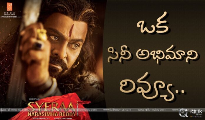 ‘చిరంజీవి’ తన నూటయాభై సినిమాల అనుభవాన్ని రంగరించి ‘సైరా నరసింహారెడ్డి‘ సినిమా తీసినట్లుంది… అంతలా ఒదిగిపోయాడు నరసింహారెడ్డి పాత్రలో.. ‘రామ్ చరణ్’ తన తండ్రికి మంచి గిఫ్టే ఇచ్చాడు…. సైరా విషయానికొస్తే ముందుగా రాంచరణ్ ని మెచ్చుకోవాలి.. చరిత్ర పుటల్లో కలిసిపోయిన ఒక మహానియుడి జీవిత కథను కమర్షియల్ గా తెరకెక్కించాలంటే మాటలా..పైగా చిరంజీవి… తన పన్నెండేళ్ల కల..