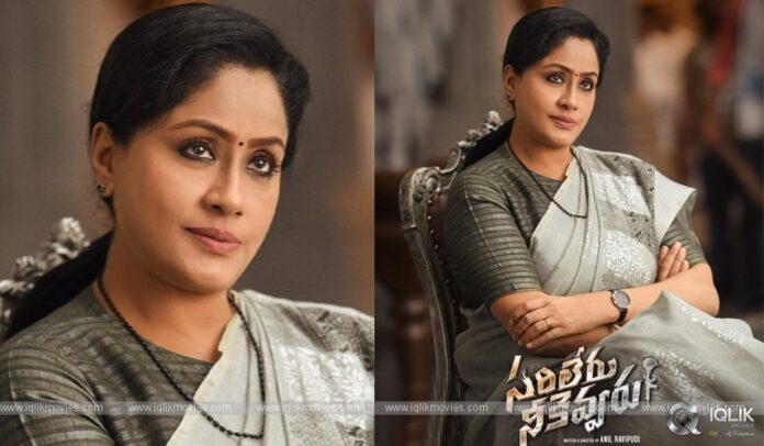 దీపావళికి ‘సరిలేరు నీకెవ్వరు..’ సర్‌ప్రైజ్‌ వచ్చేసింది. చెప్పినట్లుగానే దీపావళి గిఫ్ట్‌గా లేడీ సూపర్‌స్టార్‌ విజయశాంతి లుక్‌ని రిలీజ్‌ చేసింది చిత్ర యూనిట్‌. ఊహించన దానికన్నా ఎక్కువగా ఉంది ఈ లుక్‌లో విజయ శాంతి రాజసం. ఇంతవరకూ ఆమె ఆటిట్యూడ్‌ గురించి మాట్లాడుకున్నాం. ఇదిగో ఇప్పుడు చూస్తున్నాం. ఇదే కదా.. లేడీ సూపర్‌ స్టార్‌ అంటే.. అనేలా ఉందీ లుక్‌. ‘భారతి’ అనే కాలేజ్‌ లెక్చరర్‌ పాత్రలో విజయ శాంతి నటిస్తోంది ఈ సినిమాలో. ఈ లుక్‌లో యాష్‌ కలర్‌ చీర, జాకెట్టు ధరించి, చేతికి ఓ వాచి, మెడలో నల్లని ఓ పూసల దండ ధరించి కాలు మీద కాలేసుకుని, ఠీవీగా చేతులు కట్టుకుని కుర్చీలో కూర్చున్నారు విజయ శాంతి. లుక్స్‌తోనే ఆకాశమంత ఆటిట్యూడ్‌ ప్రదర్శించేస్తున్నారు. విడుదలైన కాసేపటికే ఈ లుక్‌ వైరల్‌ అయ్యింది. ఈ ఫోటోపై అప్పుడే మీమ్స్‌ స్టార్ట్‌ చేసేశారు నెట్టింటి కళాకారులు.