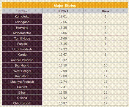 In this analysis, Karnataka, Telangana, and Haryana have topped the list by bagging the first three ranks.