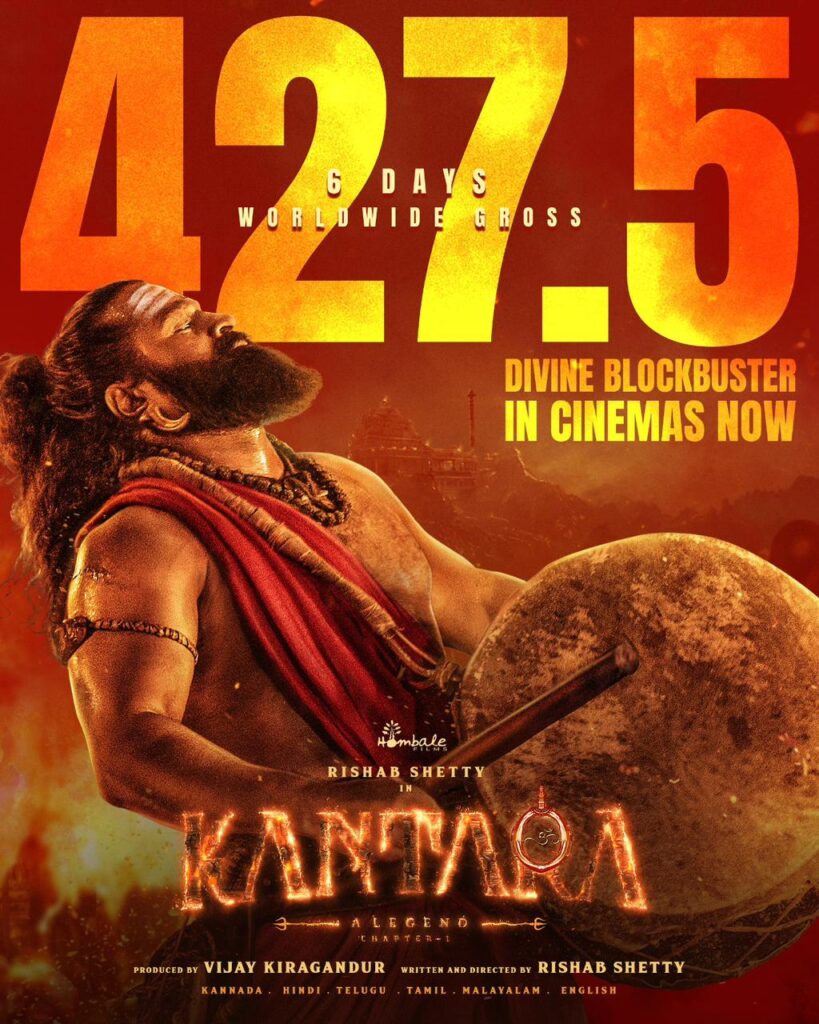 పాన్-ఇండియా స్థాయిలో భారీ అంచనాల మధ్య విడుదలైన రిషబ్ శెట్టి తాజా చిత్రం ‘కాంతార: చాప్టర్ 1’ సంచలన విజయాన్ని సొంతం చేసుకుంది. విడుదలైన ఆరు రోజుల్లోనే బాక్సాఫీస్ వద్ద అద్భుతమైన రన్ కొనసాగిస్తూ, దేశవ్యాప్తంగా కలెక్షన్లలో కొత్త రికార్డులు సృష్టిస్తోంది. ముఖ్యంగా కన్నడ, హిందీ వెర్షన్లకు ప్రేక్షకుల నుంచి అపారమైన స్పందన వస్తోంది.