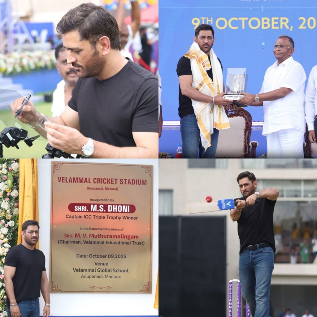 తాజాగా ధోని తమిళనాడులోని మధురైలో వెలమ్మల్ ఇంటర్నేషనల్ క్రికెట్ స్టేడియం ప్రారంభోత్సవానికి హాజరయ్యారు. ఈ వేడుకలో ధోని పేరు సోషల్ మీడియాలో ట్రెండ్ అవుతోంది. ముఖ్యంగా, స్టేడియం శిలాఫలకం మీద ధోని పేరును “Captain – ICC Triple Trophy Winner” అని లిఖించడం అభిమానుల హృదయాలను తాకింది.