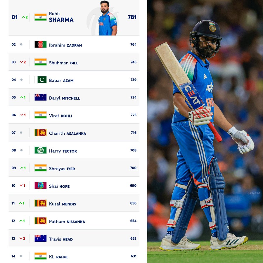 38 ఏళ్ల 182 రోజుల వయసులో ఐసీసీ వన్డే ర్యాంకింగ్స్లో నంబర్వన్గా నిలిచిన అత్యంత వయస్కుడైన ఆటగాడిగా రోహిత్ రికార్డు సృష్టించాడు. ఇంతకు ముందు అగ్రస్థానంలో ఉన్న భారత కెప్టెన్ శుభ్మన్ గిల్ (Shubhman Gill)ను వెనక్కి నెట్టి ఈ అరుదైన మైలురాయిని సాధించాడు.