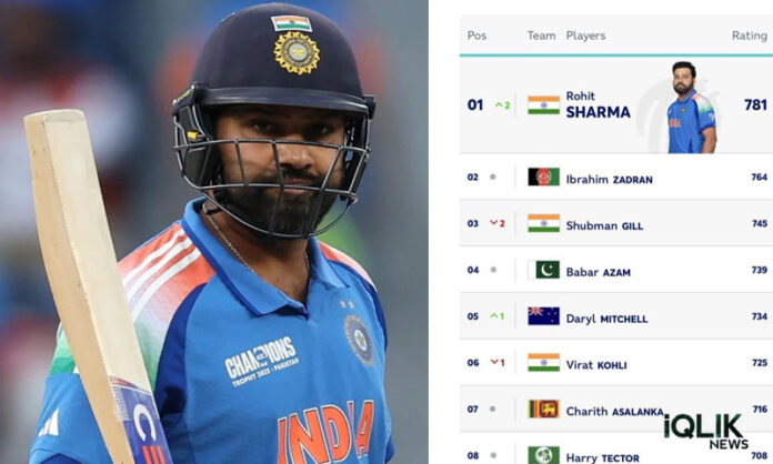 టీమిండియా మాజీ కెప్టెన్ రోహిత్ శర్మ (Rohit Sharma) మరోసారి చరిత్ర సృష్టించాడు. తాజాగా అంతర్జాతీయ క్రికెట్ కౌన్సిల్ (ICC) విడుదల చేసిన వన్డే ర్యాంకింగ్స్ (ODI Rankings)లో రోహిత్ రెండు స్థానాలు ఎగబాకి 781 పాయింట్లతో మొదటిసారిగా అగ్రస్థానాన్ని దక్కించుకున్నాడు.